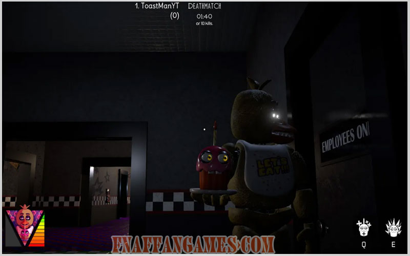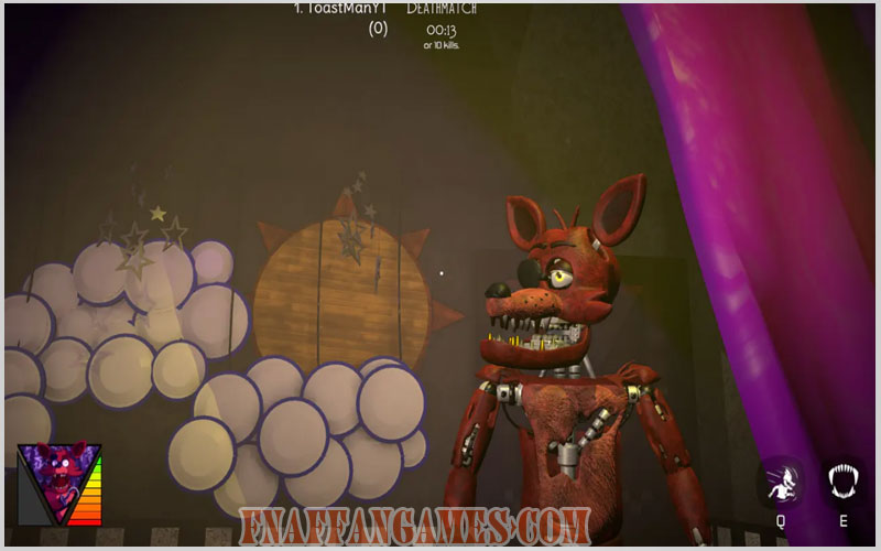 There are 3 game modes, including Deathmatch, Team Deathmatch, and Remnant Madness. In the first final game version, there are 5 FNaF 1 characters. There will be new characters, maps, modes, and other features in the far future.