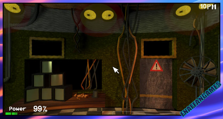 During the time your job occurs, you can see some scary animatronics wandering. Stop them before they enter your space. Otherwise, they will jump and grab you.