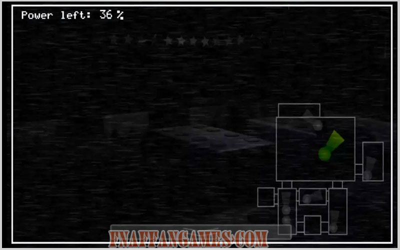 You monitor the cameras to track where Bonnie is. Make sure he will not enter your room, or he will jumpscare you. Your goal is to survive the nights from 12 AM to 6 AM.